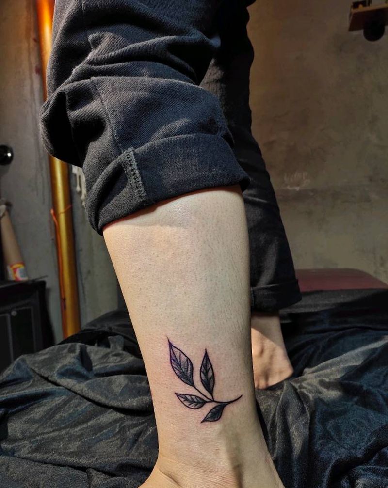 小清新纹身图片_腿部叶子纹身图案
