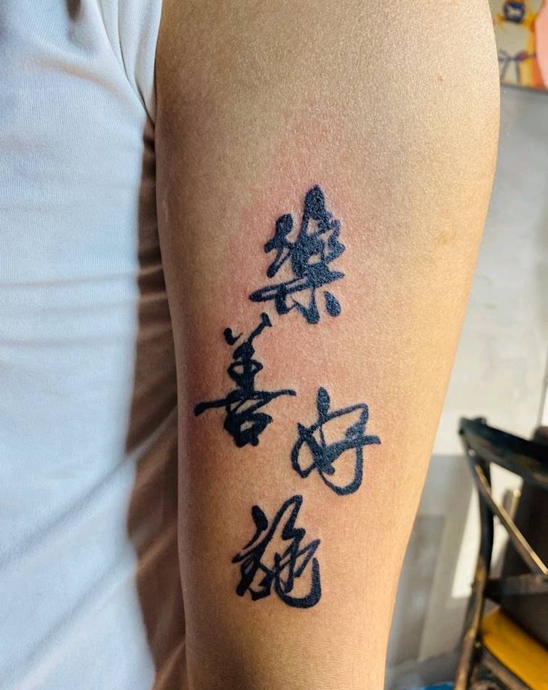 当前位置: 首页 >广东省梅州市纹身店-小八刺青工作室纹身图案>汉字纹身图片_手臂花体字纹身图案