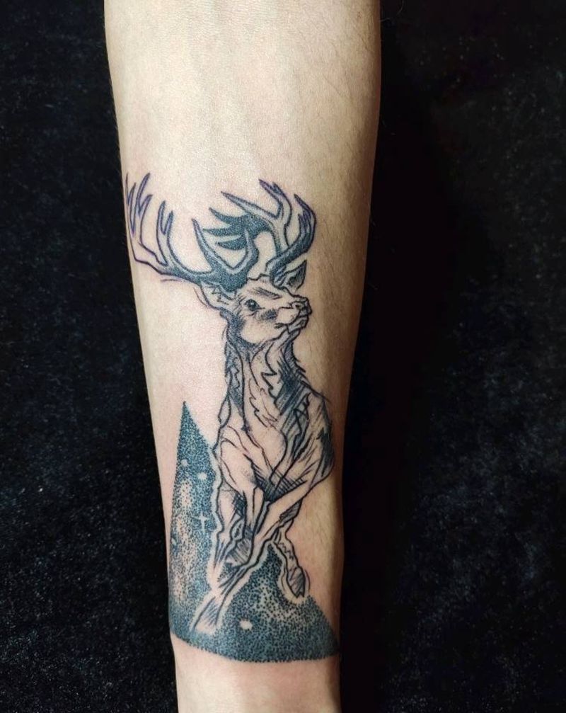 遮盖作品纹身图片_手臂点刺鹿纹身图案