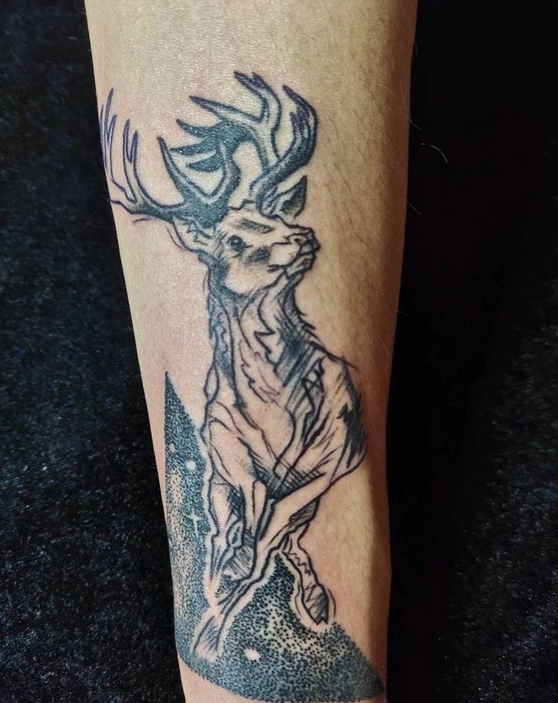 遮盖作品纹身图片_手臂点刺鹿纹身图案