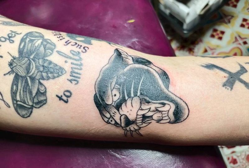 • T包小腿吹火男+阿多福纹身图片_腿部老传统新传统吹火男阿