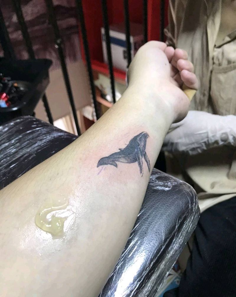当前位置: 首页 >广东省梅州市纹身店-小八刺青工作室纹身图案>鲸纹身图片_手部点刺遮盖旧纹身图案