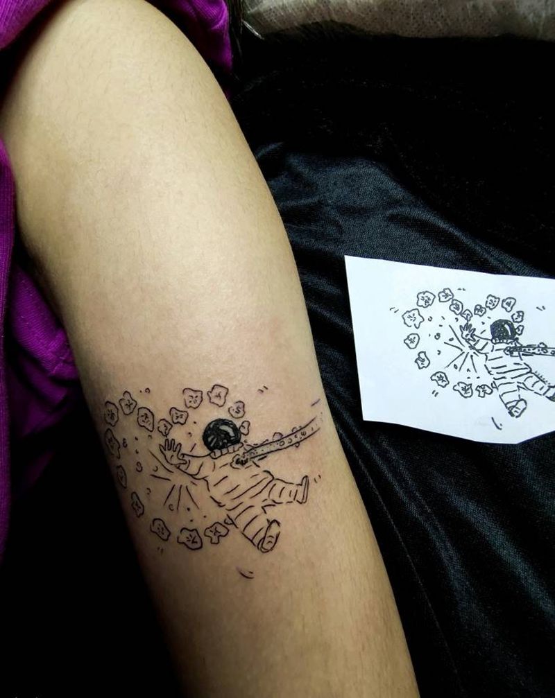 当前位置: 首页 >广东省梅州市纹身店-小八刺青工作室纹身图案>宇航员纹身图片_手臂小图纹身图案