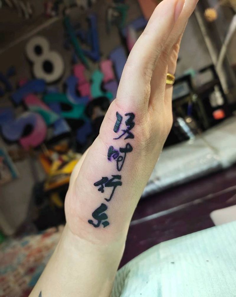 当前位置: 首页 >广东省梅州市纹身店-小八刺青工作室纹身图案>汉字纹身图片_手部花体字汉字纹身图案
