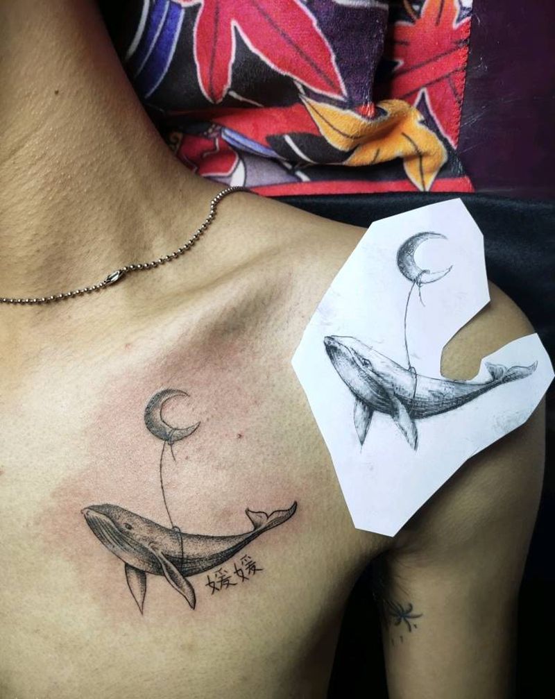 鲸鱼纹身图片_胸部点刺鲸鱼纹身图案
