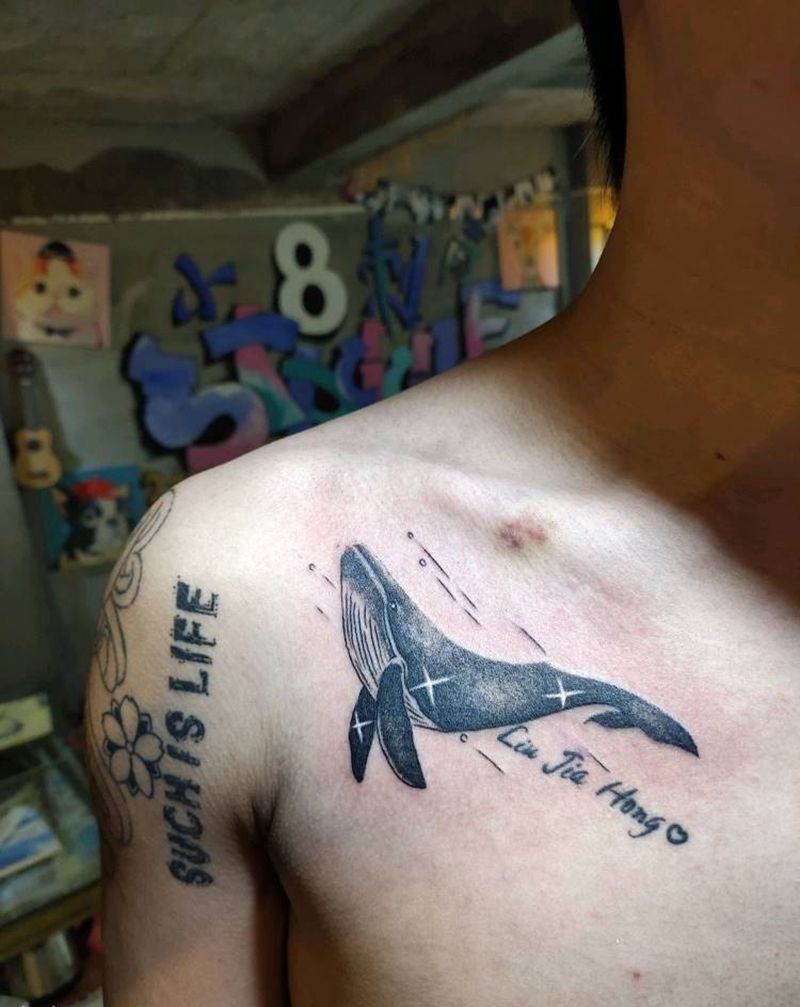 当前位置: 首页 >广东省梅州市纹身店-小八刺青工作室纹身图案>大鱼纹身图片_胸部点刺纹身图案