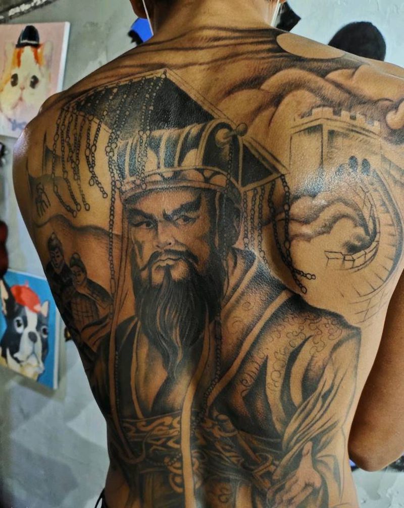 当前位置: 首页 >广东省梅州市纹身店-小八刺青工作室纹身图案>秦始皇纹身图片_背部满背纹身图案