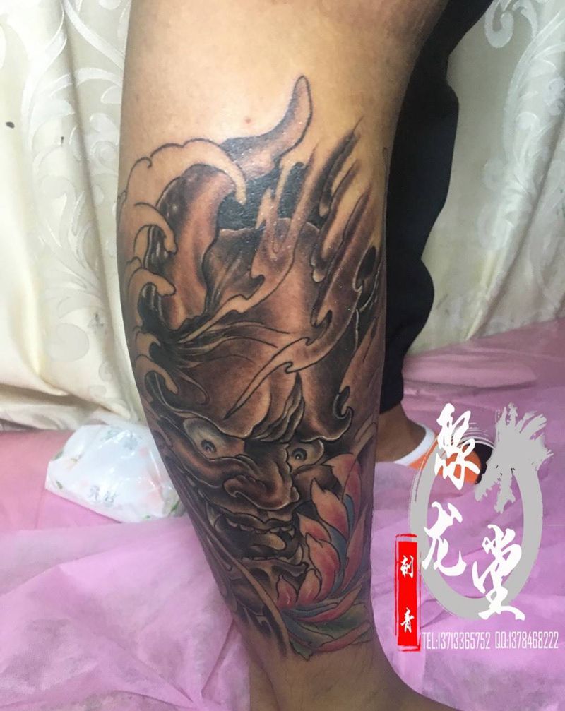 • T网红王老大花腿龙纹身图片_腿部新传统纹身图案