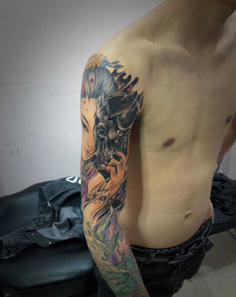 当前位置: 首页 >广东省惠州市纹身店-聚龙堂刺青纹身图案>艺伎纹身图片_手臂新传统纹身图案