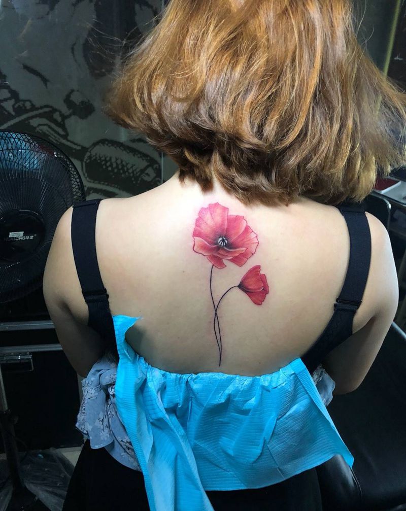 罂粟花纹身图片_颈部水彩水墨纹身图案