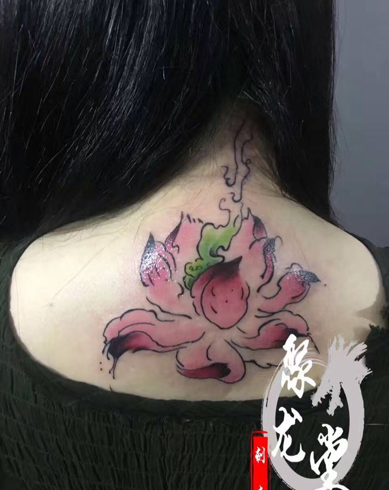 当前位置: 首页 >广东省惠州市纹身店-聚龙堂刺青纹身图案>彩莲纹身图片_成品颈部清新纹身图案