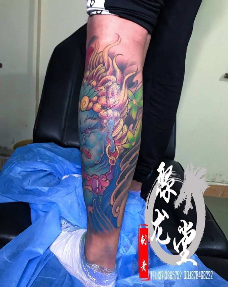 • T网红王老大花腿龙纹身图片_腿部新传统纹身图案