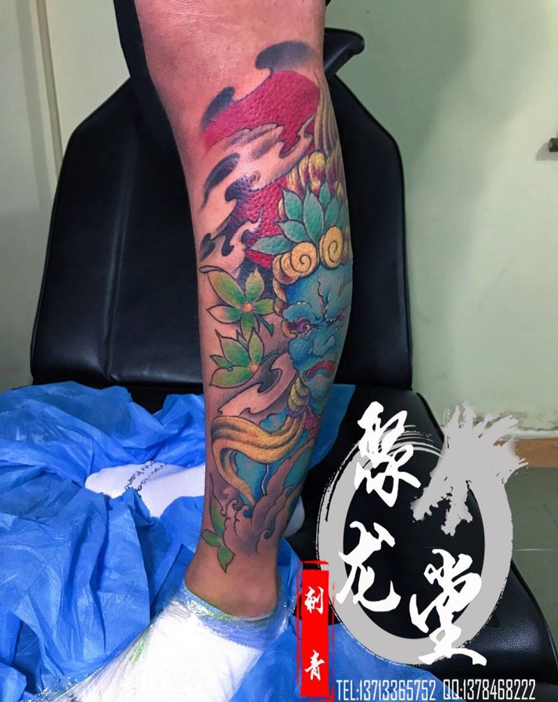 • T网红王老大花腿龙纹身图片_腿部新传统纹身图案