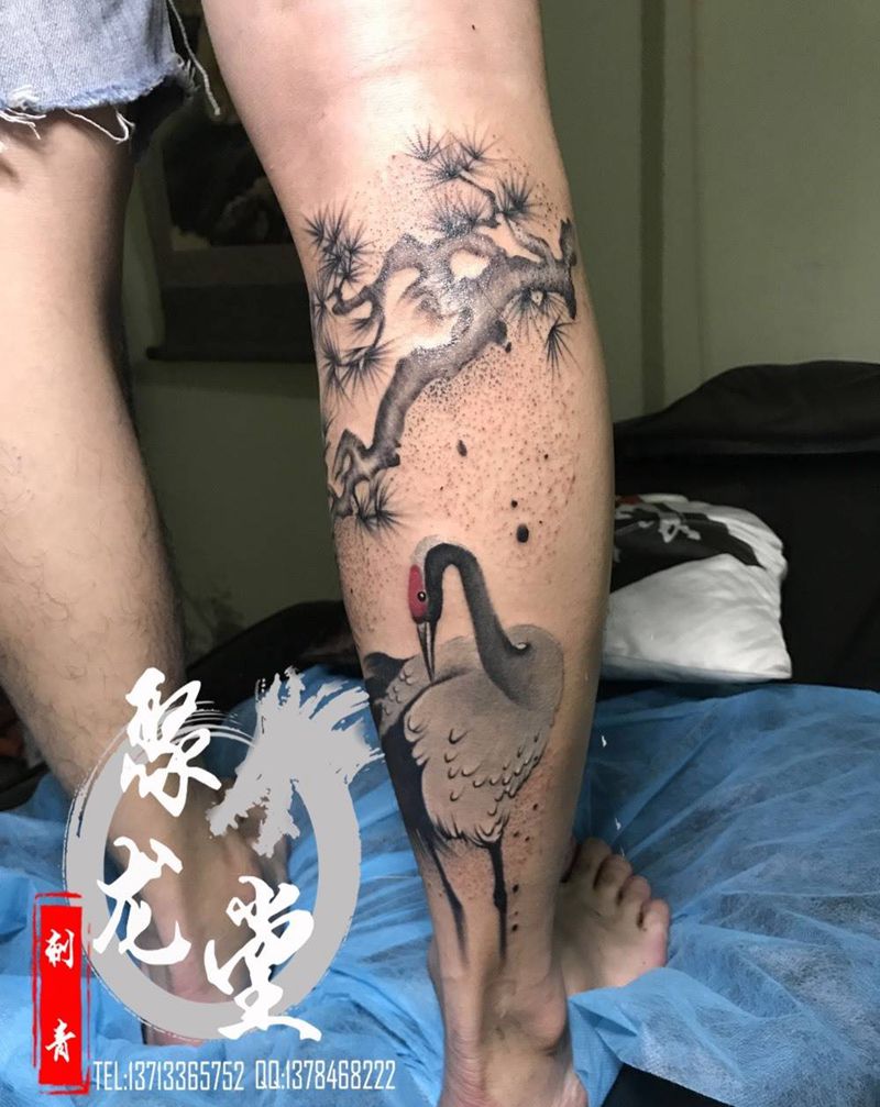 当前位置: 首页 >广东省惠州市纹身店-聚龙堂刺青纹身图案>水墨鹤纹身图片
