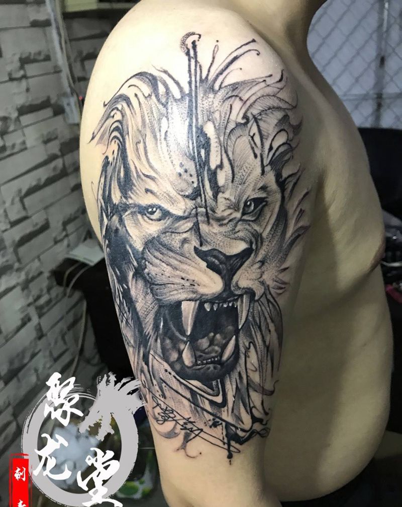 当前位置: 首页 >广东省惠州市纹身店-聚龙堂刺青纹身图案>水墨点狮子头纹身图片