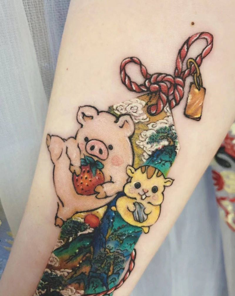 当前位置: 首页 >广东省汕尾市纹身店-丰翼轩刺青纹身图案>【安心猪与安弘鼠·小国画系列】纹身图片_手臂水墨水彩中国画卡通动画纹身图案