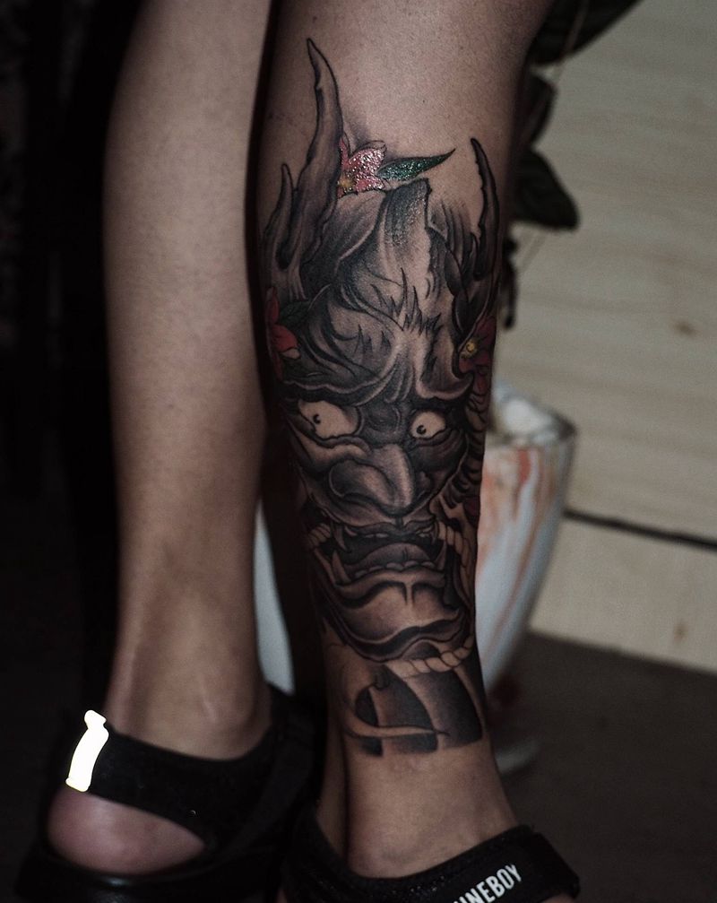 般若纹身图片_腿部新传统纹身图案