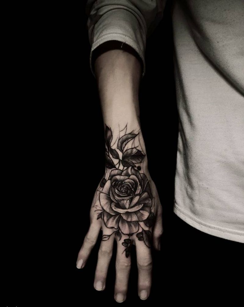 • 手背潮流时尚的玫瑰花眼睛纹身图案