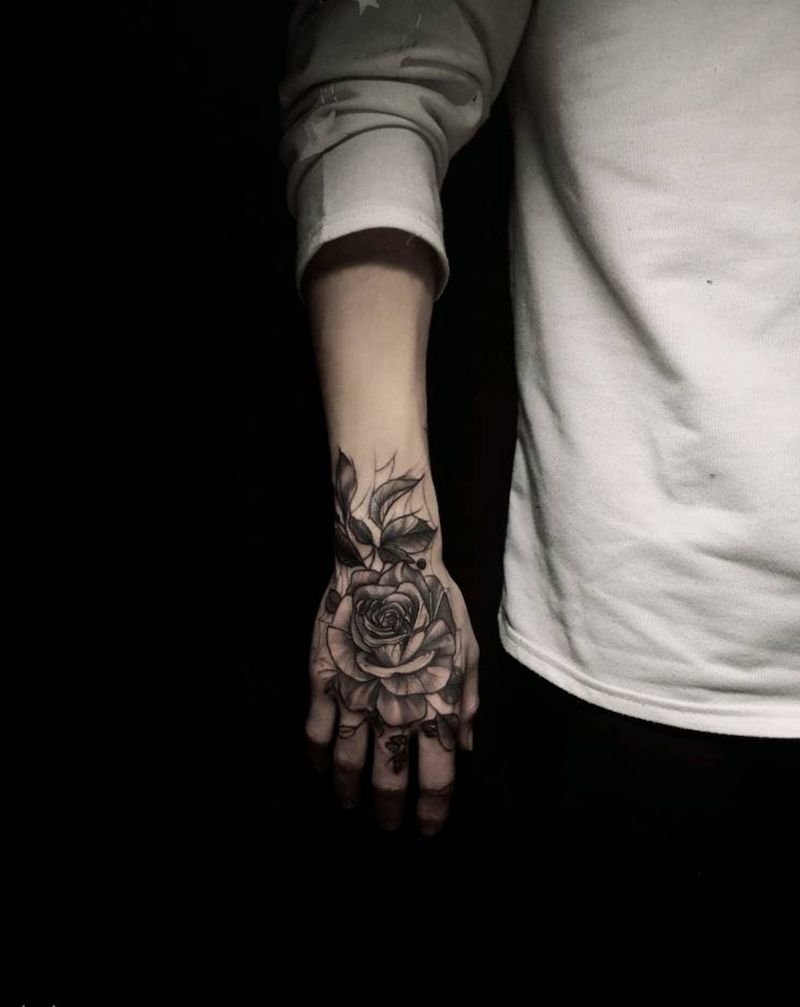 • 手背潮流时尚的玫瑰花眼睛纹身图案