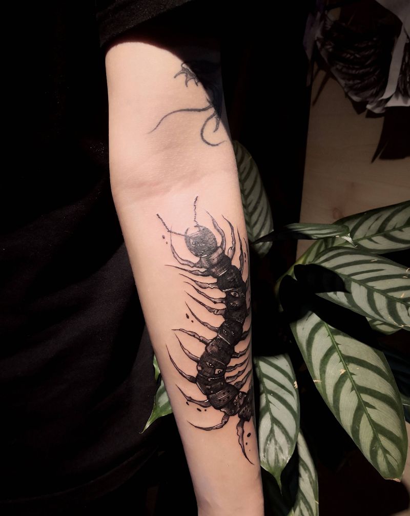 当前位置: 首页 >广东省惠州市纹身店-和刺青纹身图案>暗黑蜈蚣纹身图片_手臂纹身图案