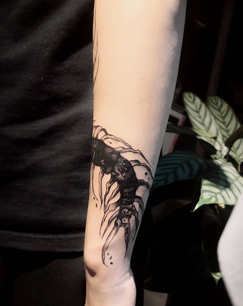 当前位置: 首页 >广东省惠州市纹身店-和刺青纹身图案>暗黑蜈蚣纹身图片_手臂纹身图案