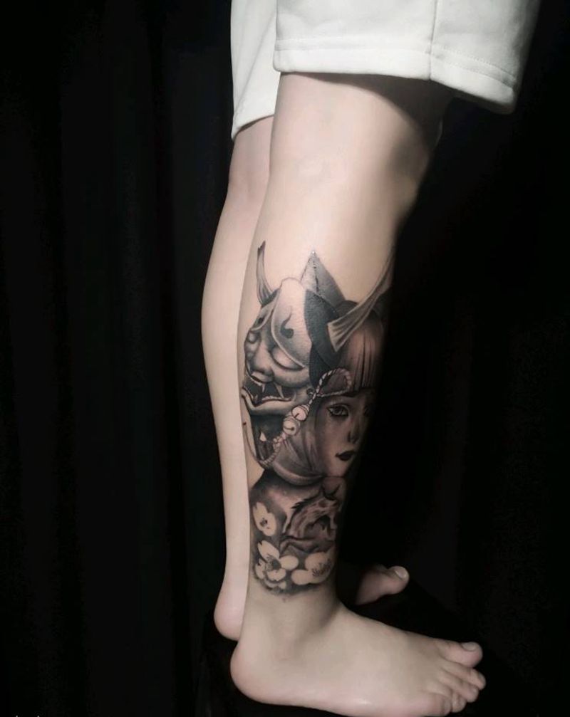 • T网红王老大花腿龙纹身图片_腿部新传统纹身图案