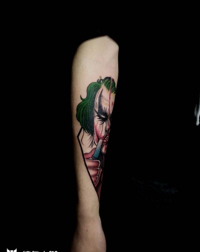 当前位置: 首页 >广东省惠州市纹身店-和刺青纹身图案>小丑纹身图片_手臂New School纹身图案