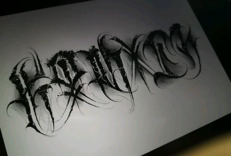 暗黑花体字纹身图片_手部花体字纹身图案