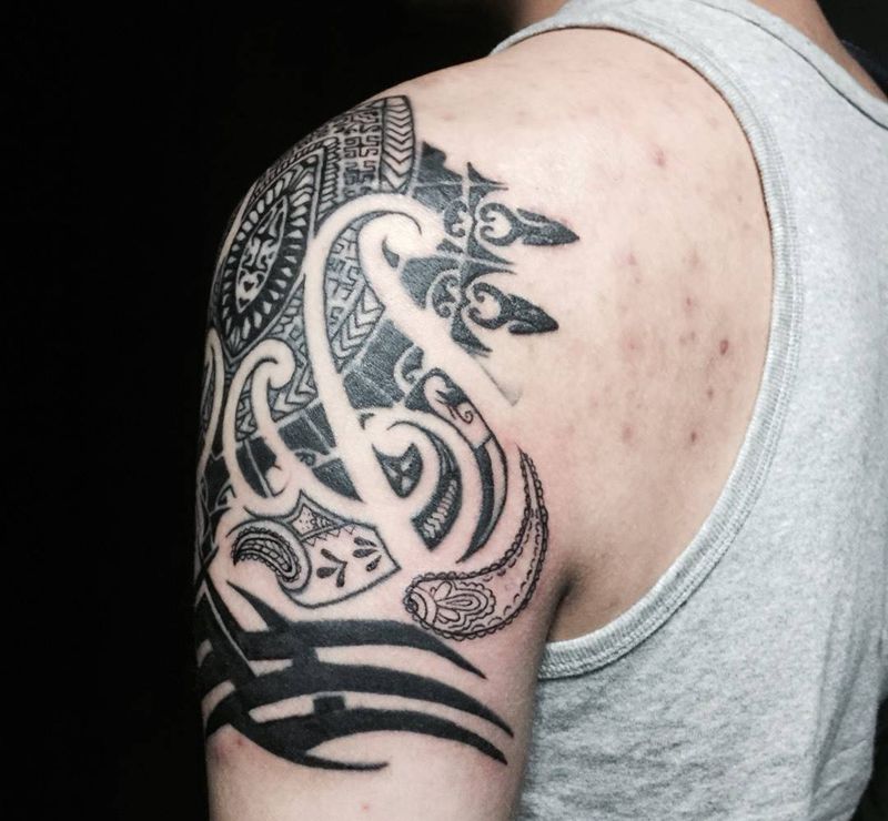 • 纹身吧推荐的披肩图腾半胛纹身图案作品展示