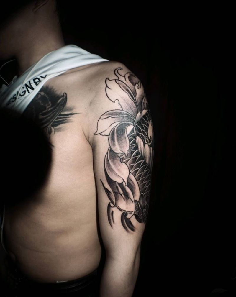 传统鲤鱼纹身图片_手臂新传统纹身图案