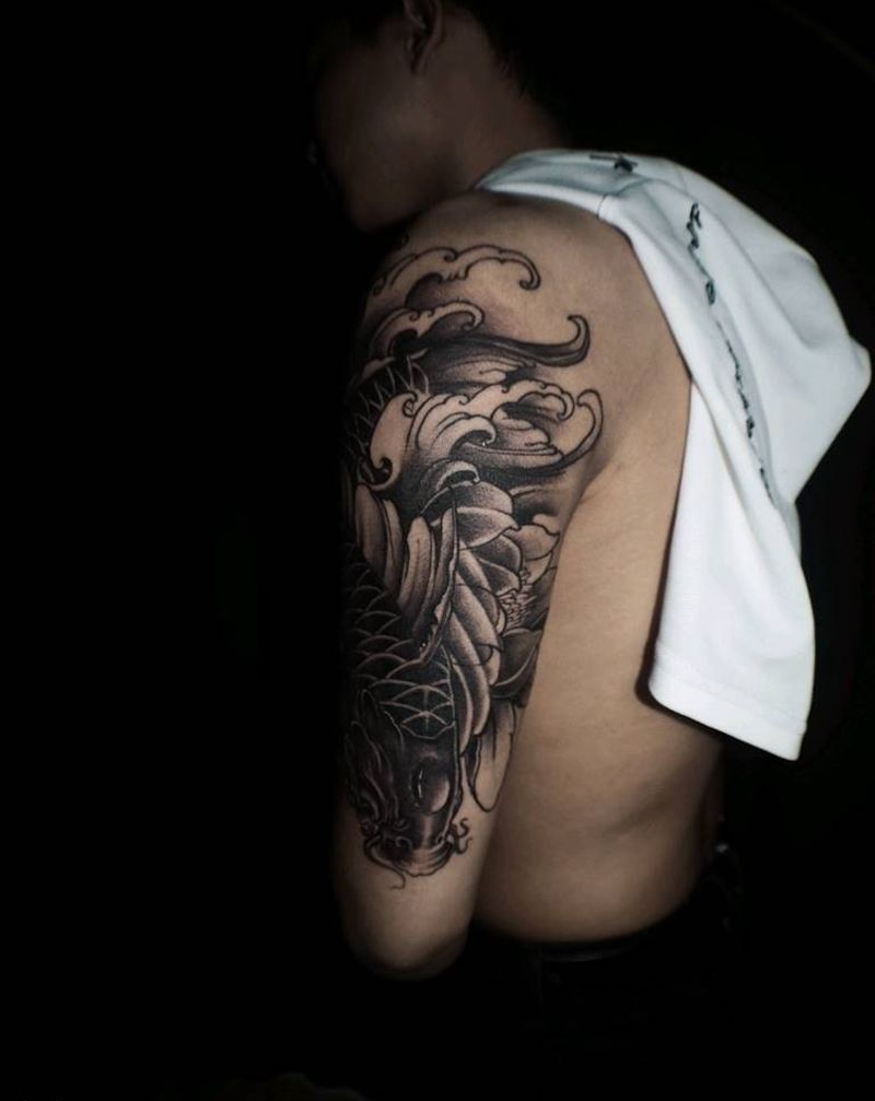传统鲤鱼纹身图片_手臂新传统纹身图案