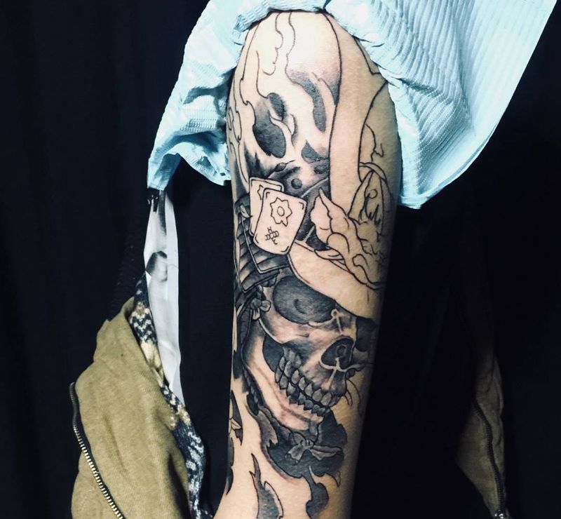 当前位置: 首页 >广东省惠州市纹身店-和刺青纹身图案>传统包大臂纹身图片_成品手臂传统鬼神纹身图案