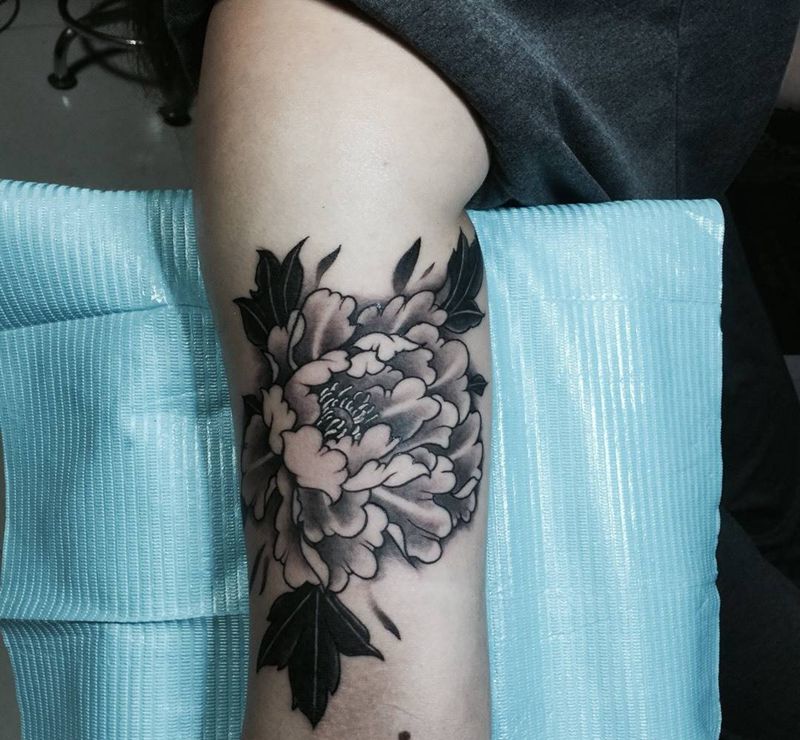 牡丹纹身图片_成品手臂传统原创静物纹身图案