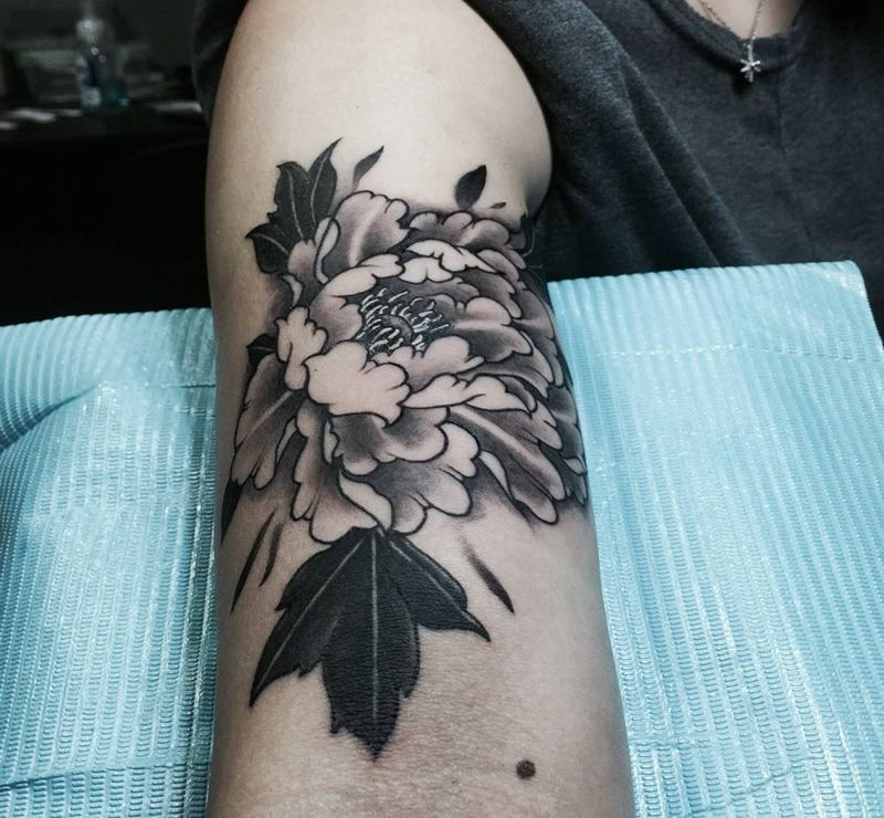 牡丹纹身图片_成品手臂传统原创静物纹身图案