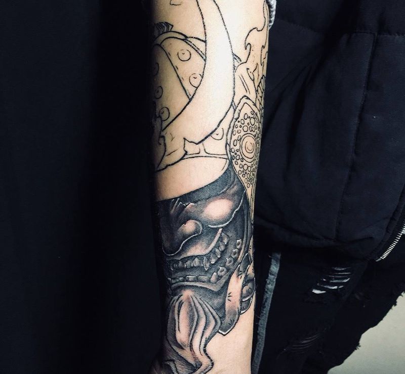 当前位置: 首页 >广东省惠州市纹身店-和刺青纹身图案>传统武士纹身图片_成品手臂传统鬼神纹身图案