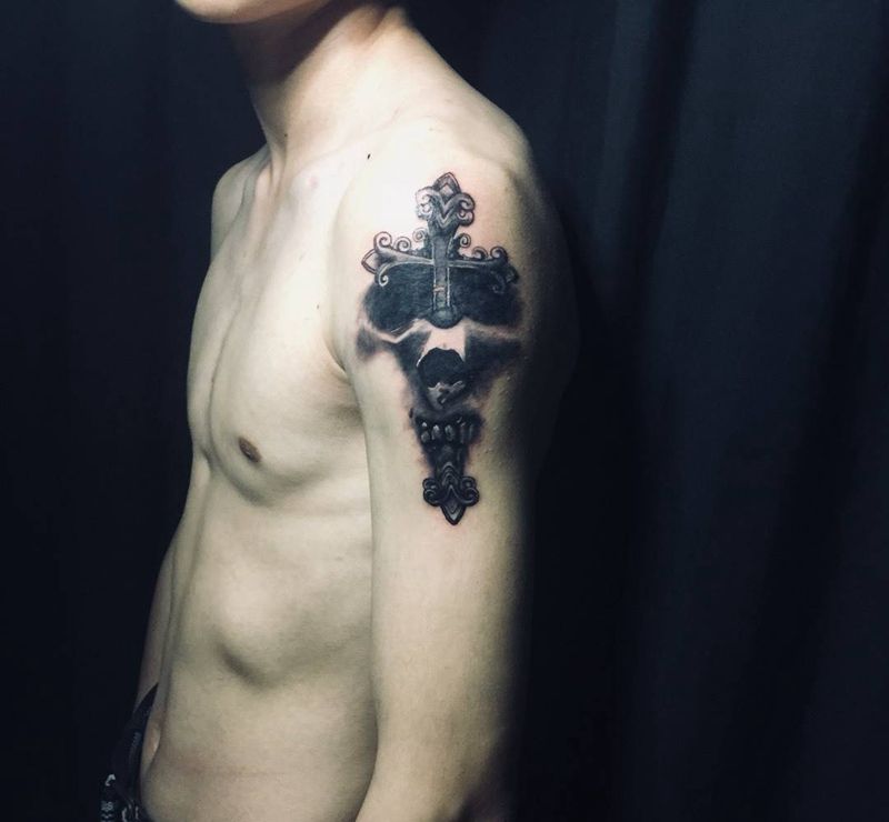 • 纹身吧推荐的披肩图腾半胛纹身图案作品展示