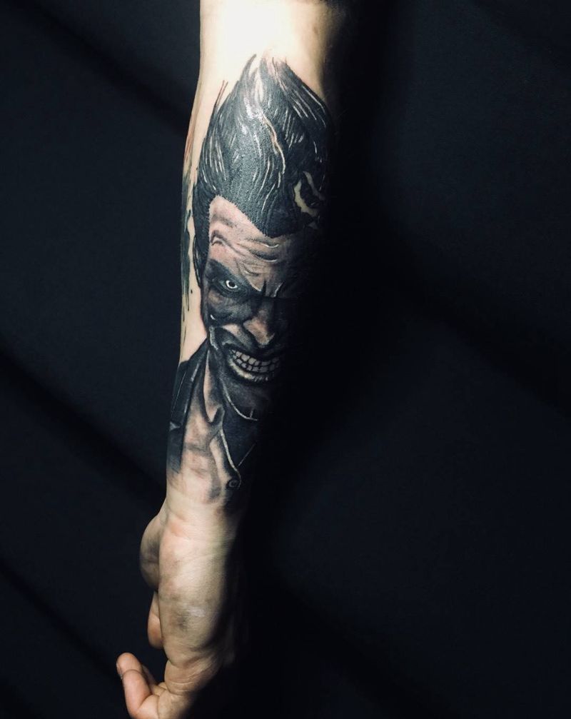 当前位置: 首页 >广东省惠州市纹身店-和刺青纹身图案>小丑男纹身图片_成品手臂欧美纹身图案