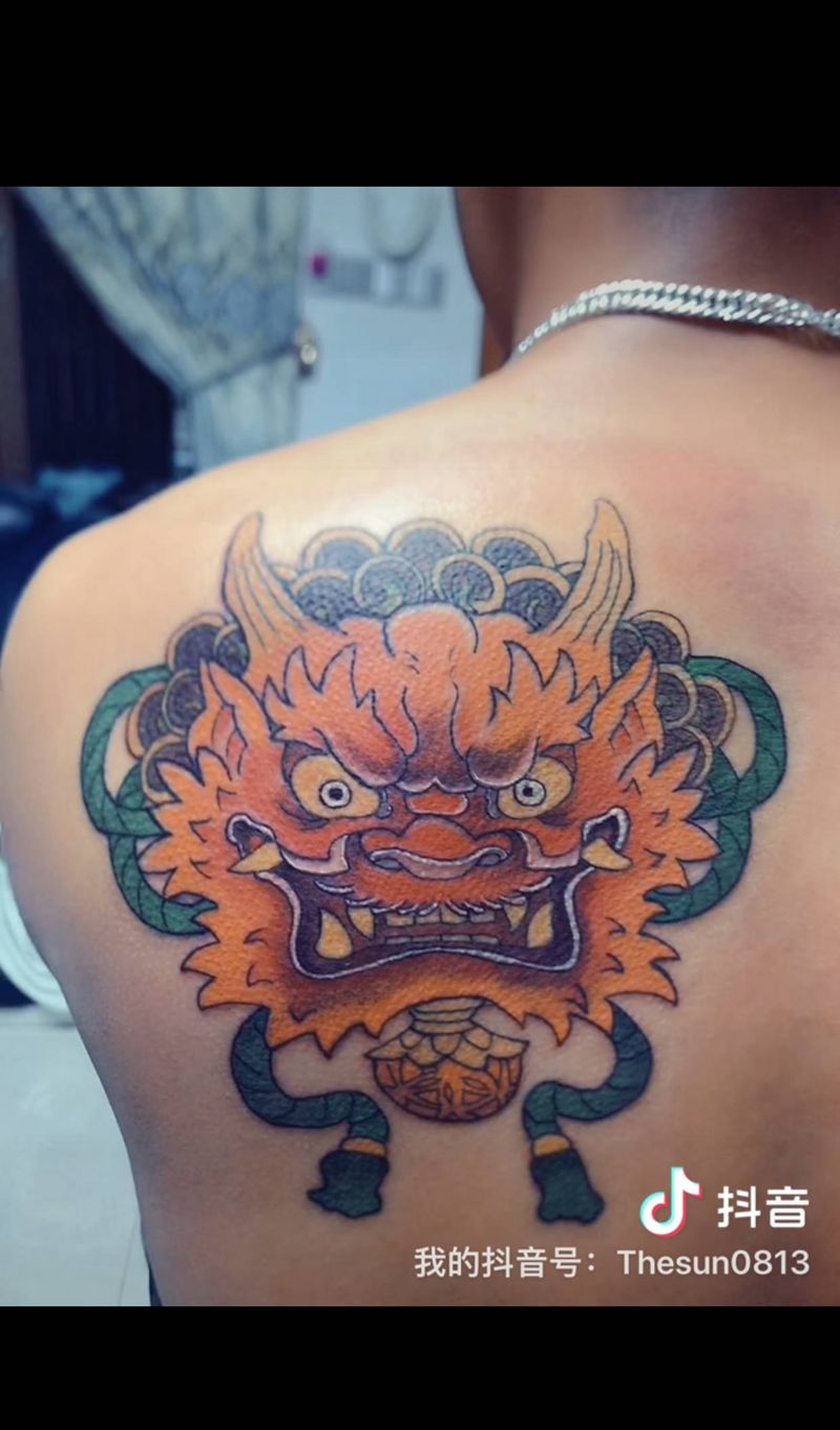 当前位置: 首页 >广东省汕尾市纹身店-墨铭刺青纹身图案>唐狮纹身图片_背部新传统纹身图案