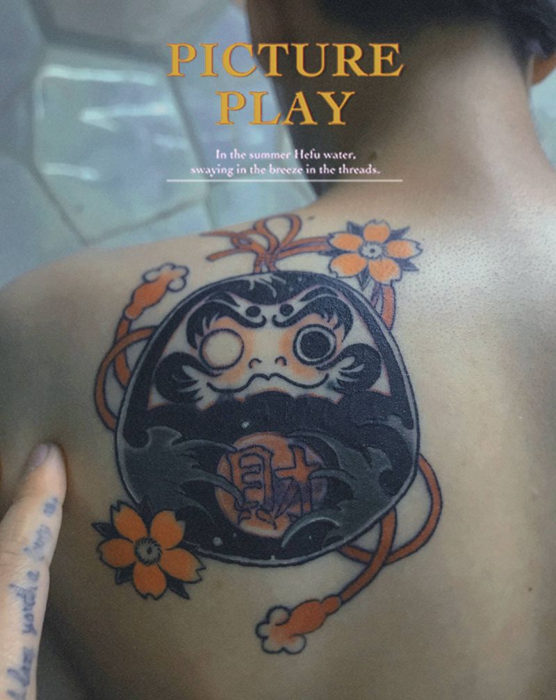达摩蛋纹身图片_肩部背部新传统纹身图案