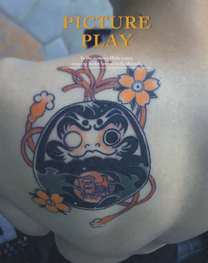 达摩蛋纹身图片_肩部背部新传统纹身图案