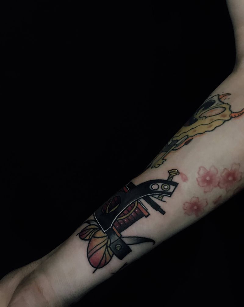 当前位置: 首页 >广东省惠州市纹身店-18Tattoo纹身图案>纹身机纹身图片_手臂New School纹身图案