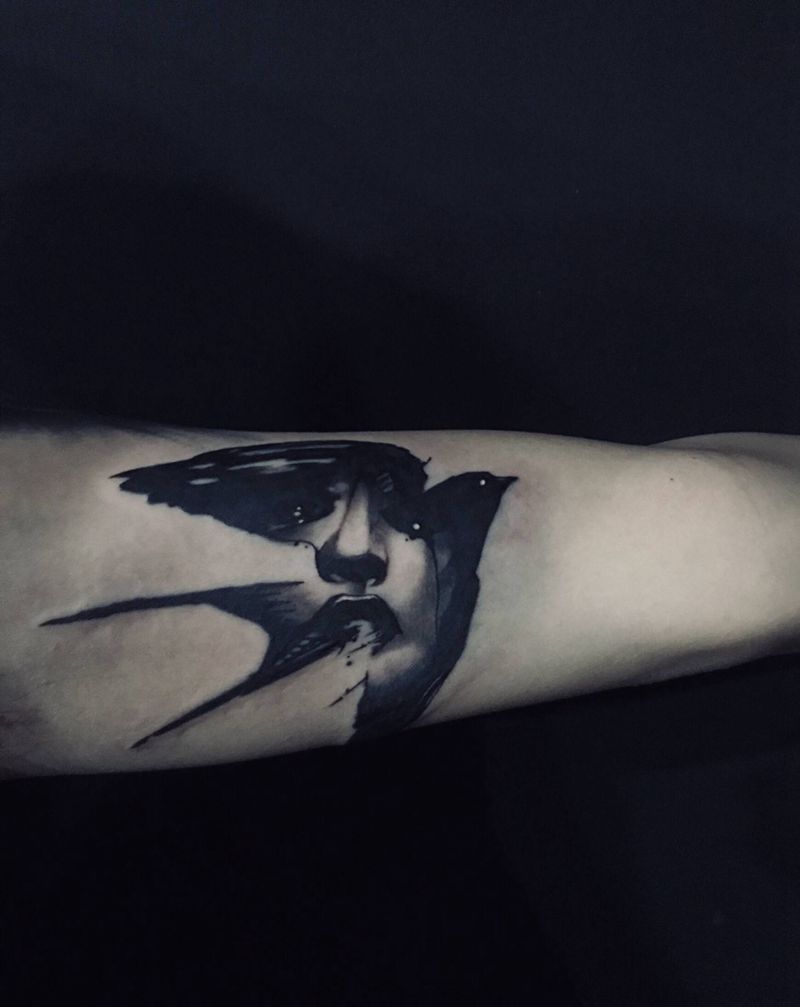 写实人物小黑燕纹身图片_手臂欧美写实纹身图案