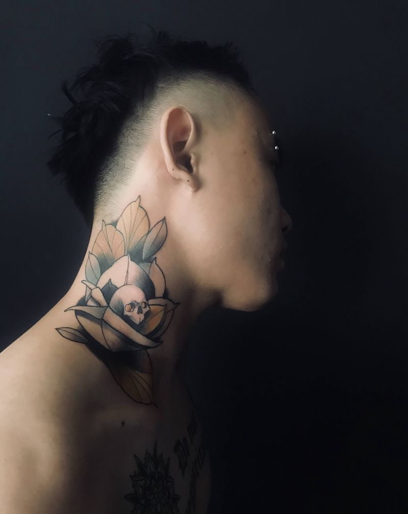 当前位置: 首页 >广东省惠州市纹身店-18Tattoo纹身图案>玫瑰纹身图片_颈部New School纹身图案