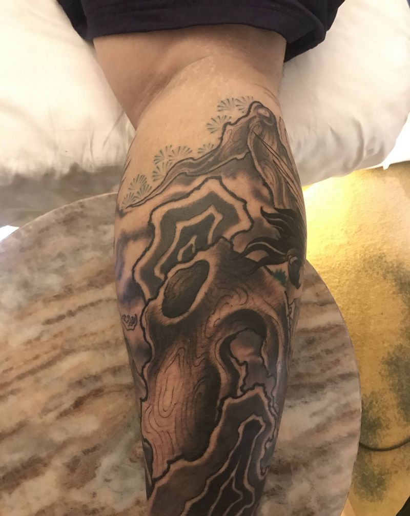 • T网红王老大花腿龙纹身图片_腿部新传统纹身图案