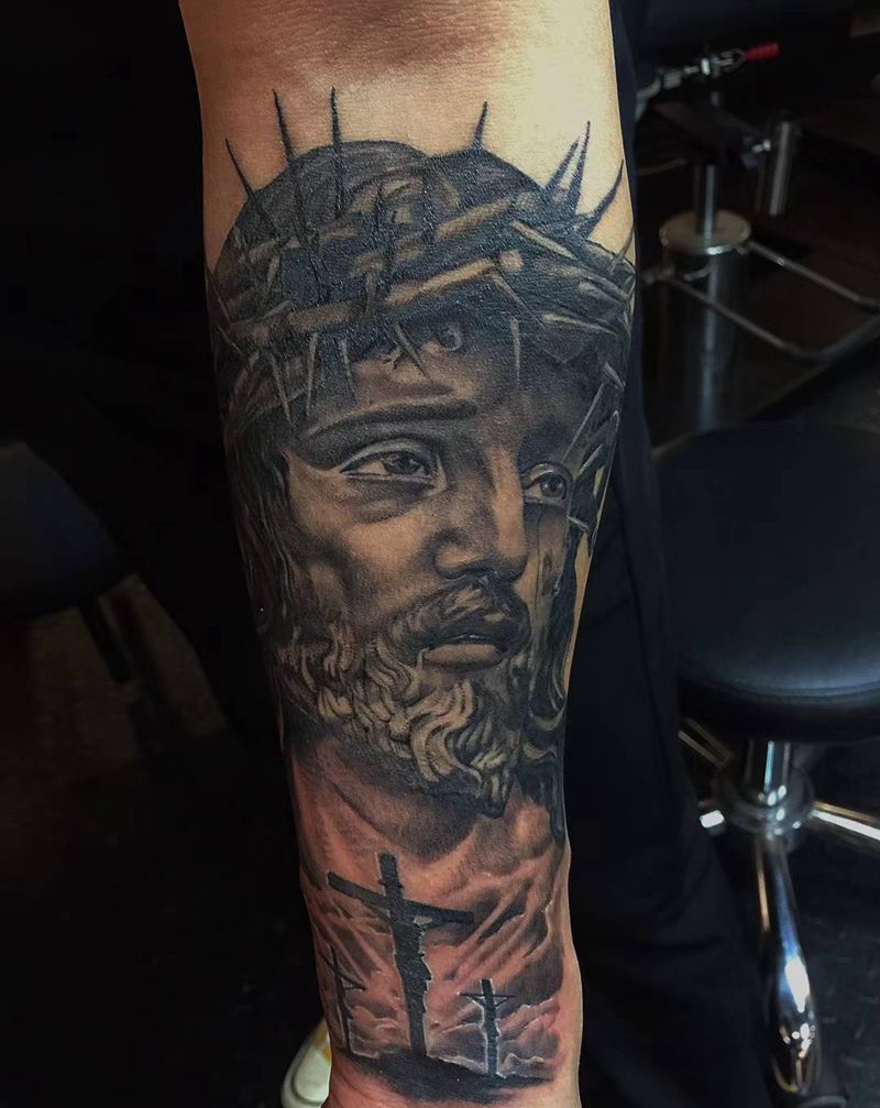 当前位置: 首页 >广东省汕尾市纹身店-好奇刺青纹身图案>耶稣纹身图片_手臂纹身图案