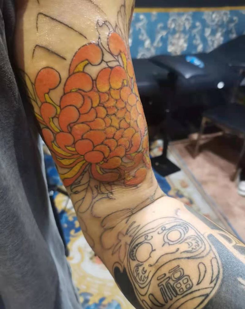 当前位置: 首页 >广东省梅州市纹身店-敦煌刺青纹身图案>般若菊花纹身图片_手臂纹身图案