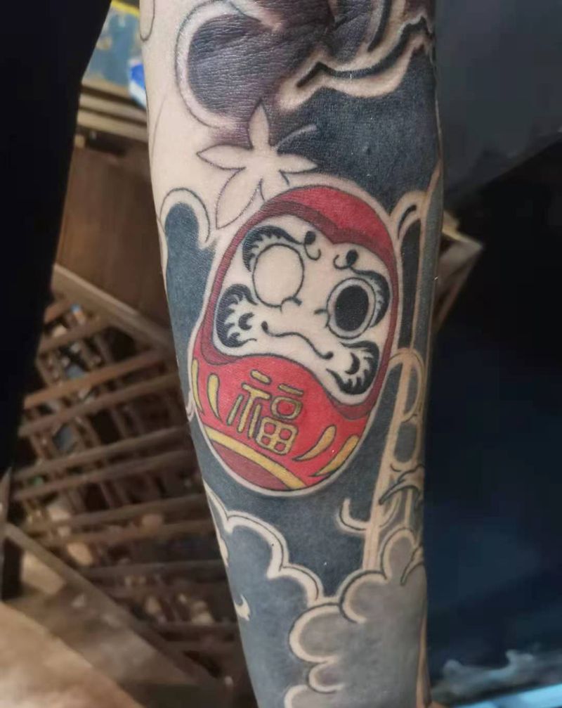 达摩蛋纹身图片_手臂老传统新传统纹身图案