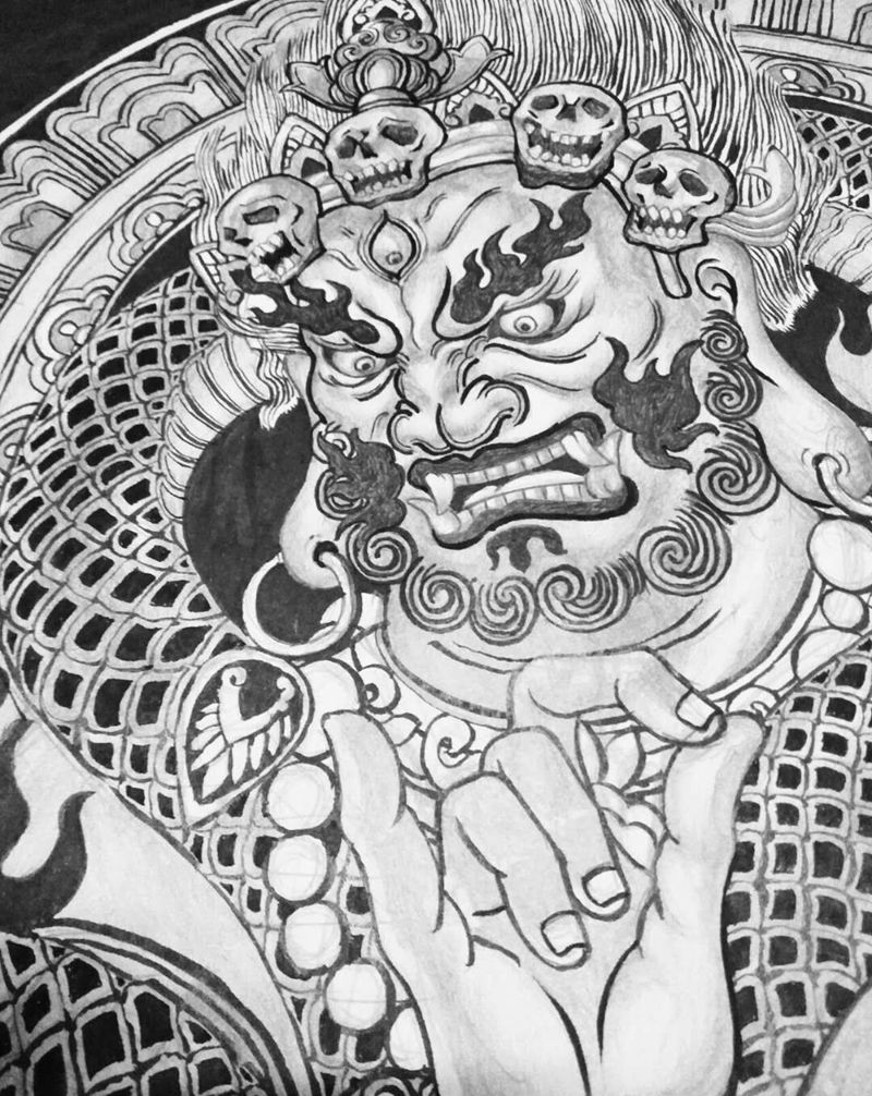 当前位置: 首页 >广东省梅州市纹身店-敦煌刺青纹身图案>大黑天原创手稿纹身图片_手臂腿部大黑天宗教信仰纹身图案