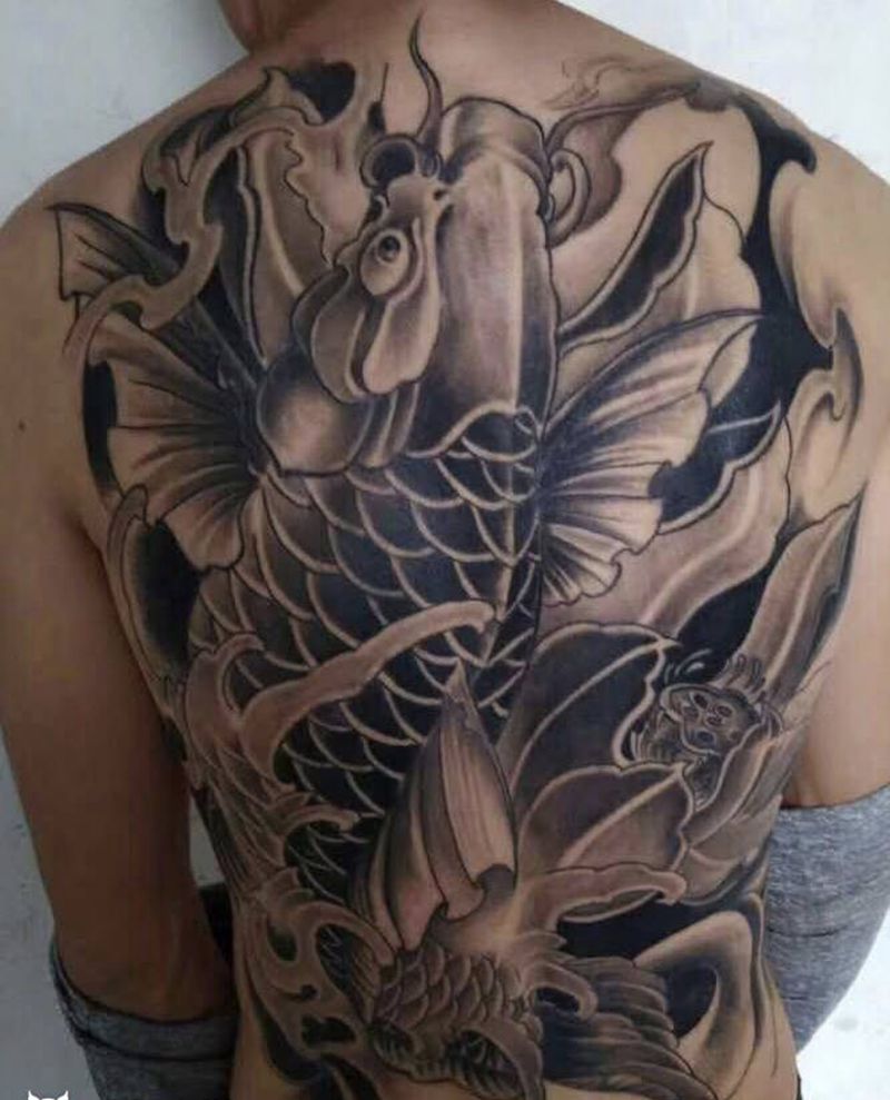 黑灰满背纹身图案