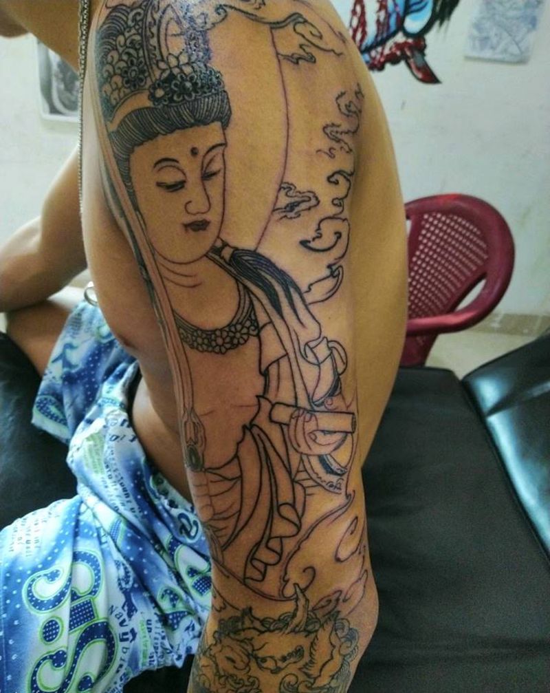 当前位置: 首页 >广东省汕尾市纹身店-東道主刺青纹身图案>花臂线条纹身图片_手臂新传统纹身图案